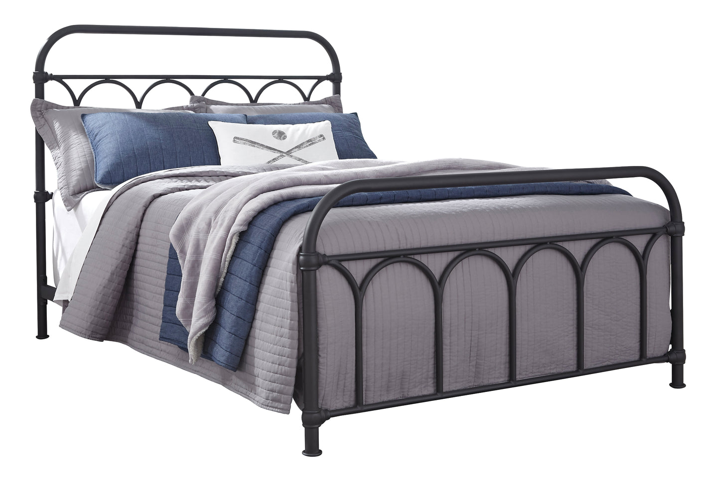 | Details | Made of steel, Includes headboard, footboard and rails, Powder coated finish, Moulded metal accents, Foundation/box spring required, sold separately, Mattress available, sold separately, Assembly required, Bed is compatible with an adjustable base | |
