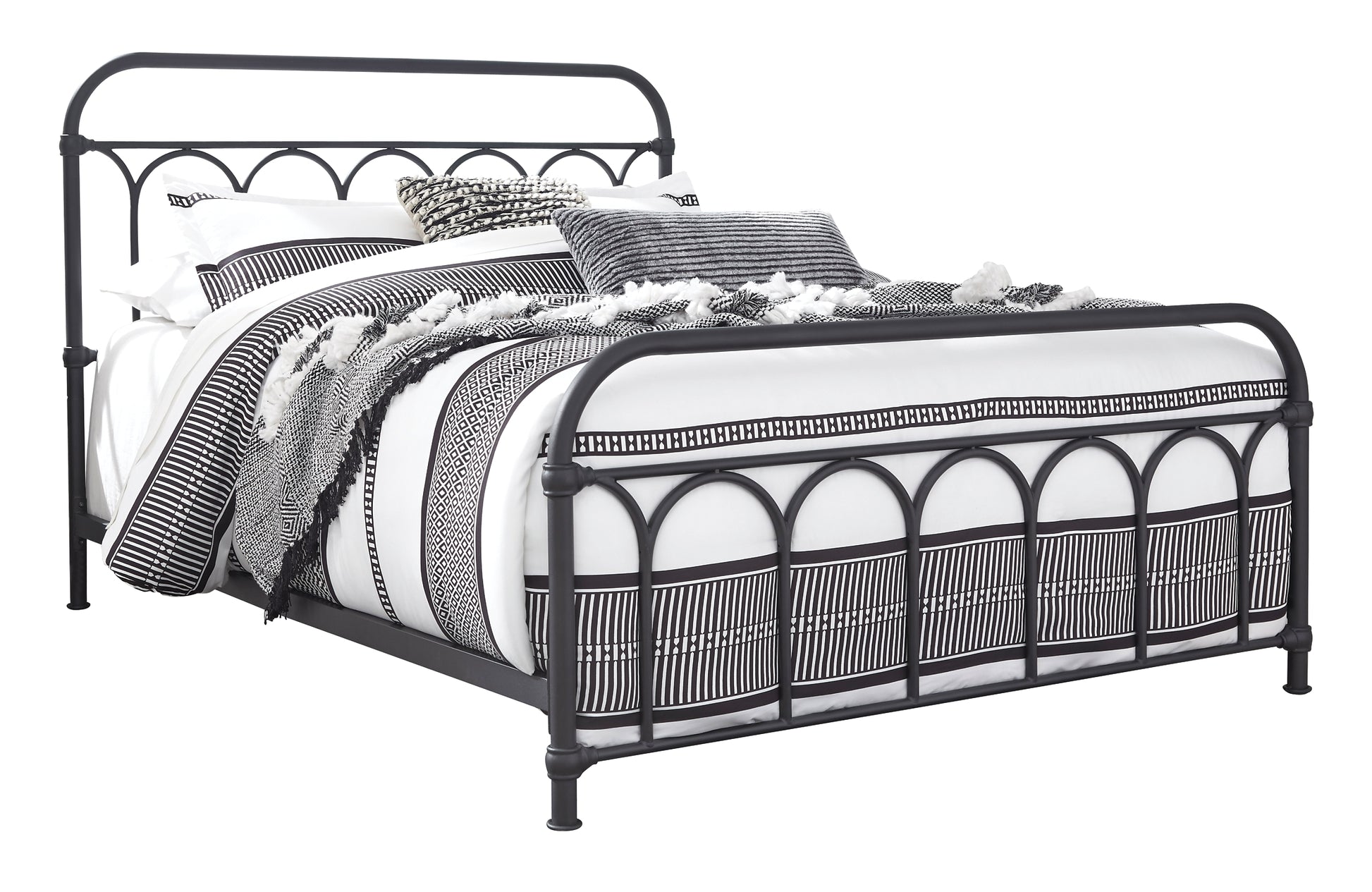 Looking to bring back a sense of bygone charm? Dream it, live it with this queen metal bed. Matte black frame with moulded "fittings" brilliantly mimics wrought-iron beds from yesteryear for a look that’s perfect for your modern farmhouse or cottage-quaint escape.